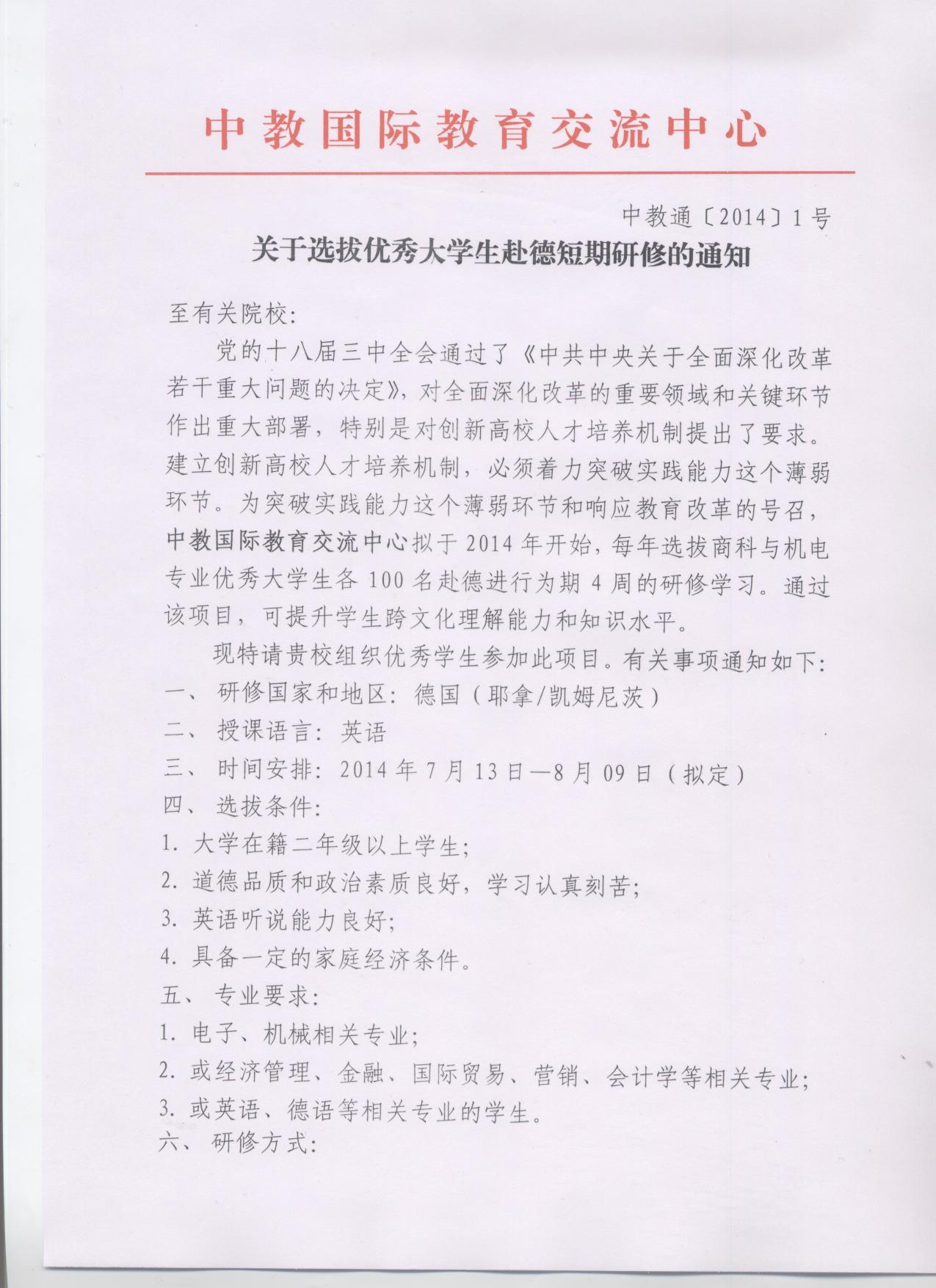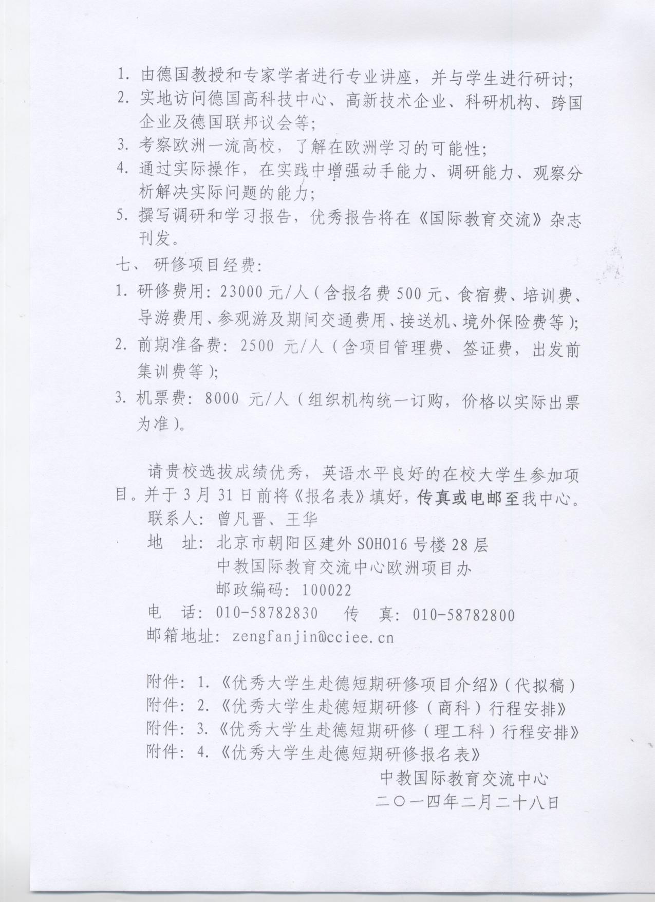 附件一:项目通知1,项目通知2 附件二:赴德研修行程安排(商科) 附件三:赴德行程安排(工科)