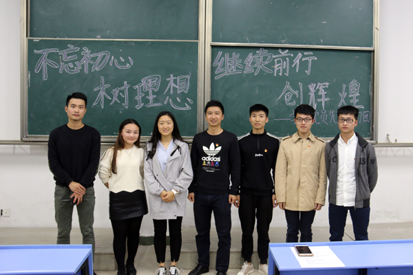 为深入学习宣传贯彻党的十九大精神,创新推进“两学一做”学习教育制度化常态化,我院学生党总支始终深入学生,站在学生角度思考问题,以服务学生为宗旨,组建成立了学生党员先锋讲学团,发挥党员先锋模范作用。2017年11月3日晚上18点,学生党员先锋讲学团第一次讲学活动在国际楼101教室举办,活动主题为“不忘初心树理想,继续前行创辉煌”。