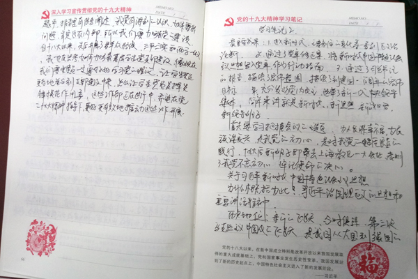 随后,各支部迅速行动起来,结合支部实际,开展了一系列的学习教育活动,掀起了学习贯彻十九大精神的热潮。教职工各支部向全体党员发放了党的十九大精神学习笔记,要求党员自觉学习并将学习体会记录下来。同时,将学习融入到工作例会中,交流学习体会,用十九大精神武装大脑,直接指导实际工作。学生各支部丰富学习形式,开展了一系列学习活动,组织党员学习十九大报告,开展十九大精神基本知识小测试,同时结合支部实际,研讨长效坚持基层学生党支部建设的问题,寓学于做,争取做到用十九大精神指导个人学习,指导支部建设。