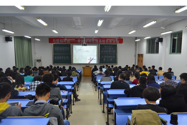 11月21日晚7点,为积极响应团江西省委深入开展的“相约校园,成长对话——名家讲坛”活动,特邀中共共青城市委常委、副市长,共青团江西省委权益部部长杨龙兴做客我院“航大英才”大学生骨干培训班第三期暨与信仰对话—党政领导走进高校名家讲坛,在国际楼101室做了一场题为《阳光青春—70后对话90后》的讲座。校团委领导、学院领导、老师及近两百名学生共同聆听了此次讲座。